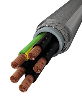 Oliebestandigt, dobbeltkappet, stålflettet PVC-styrekabel, der anvendes, hvor der kræves en fleksibel kabelforbindelse til maskiner, kontroludstyr o.lign.
